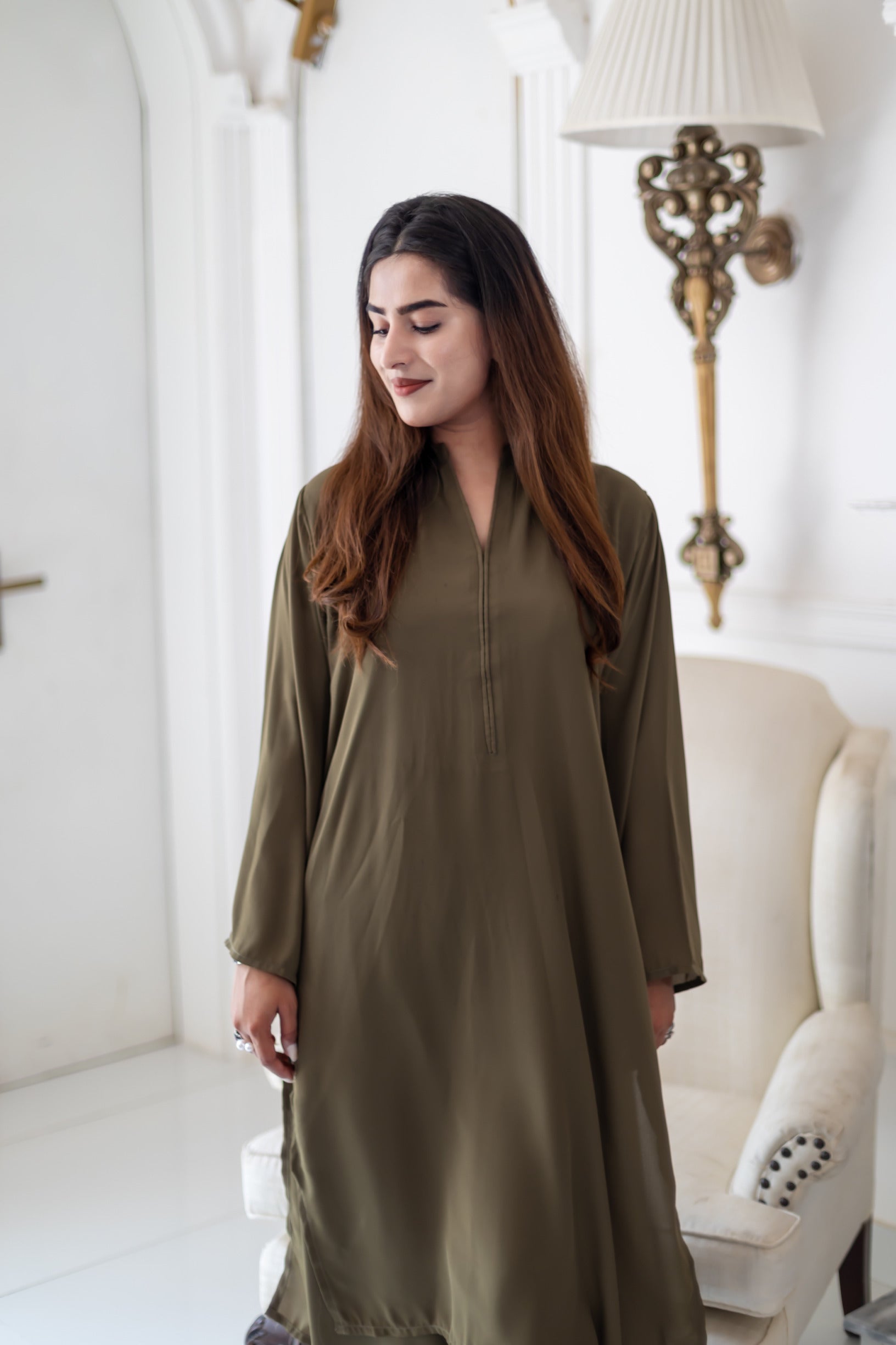 Design details: This two-piece set includes matching separates featuring slightly loose fit long shirt paired with straight pants
