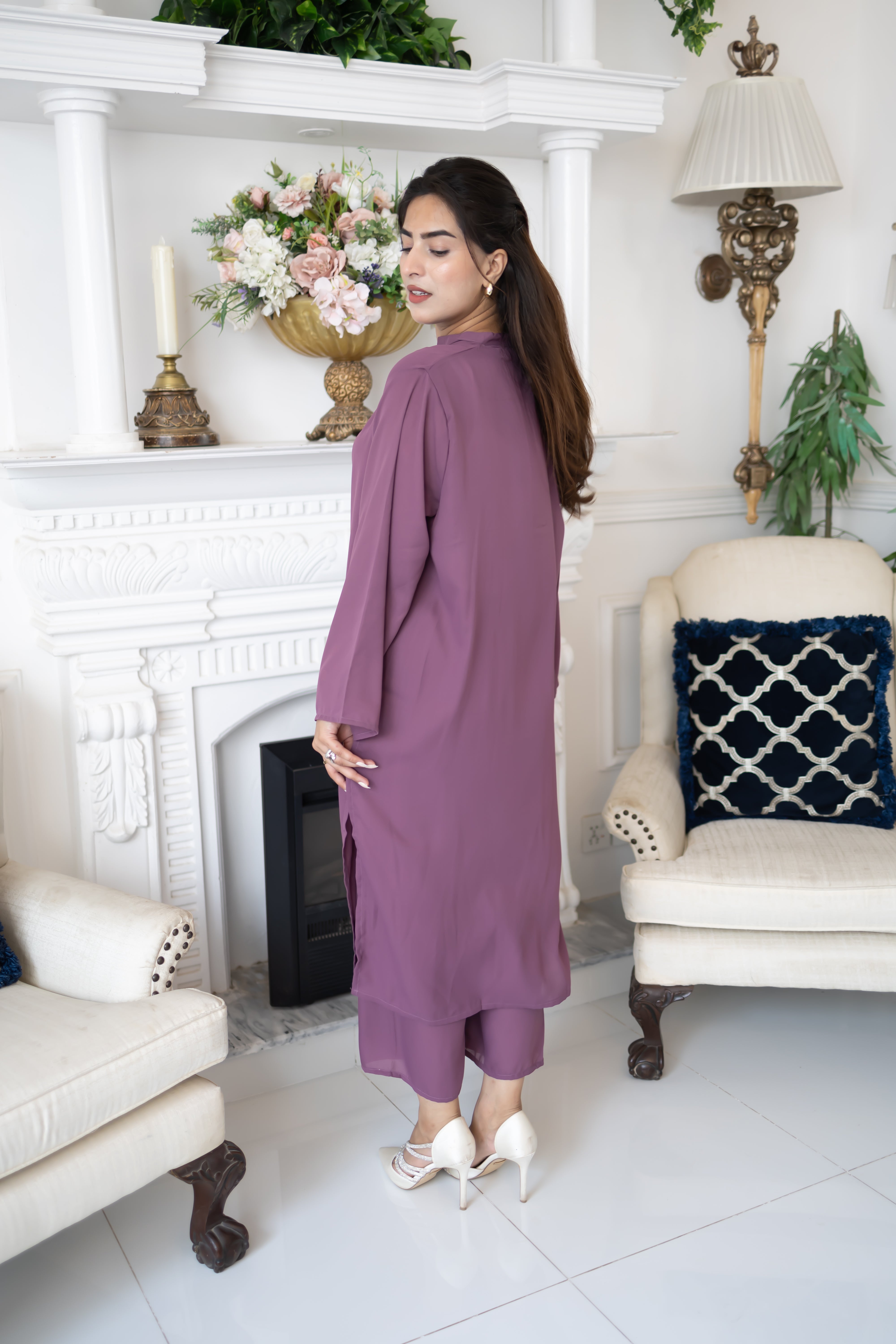 Design details: This two-piece set includes matching separates featuring slightly loose fit long shirt paired with straight pants